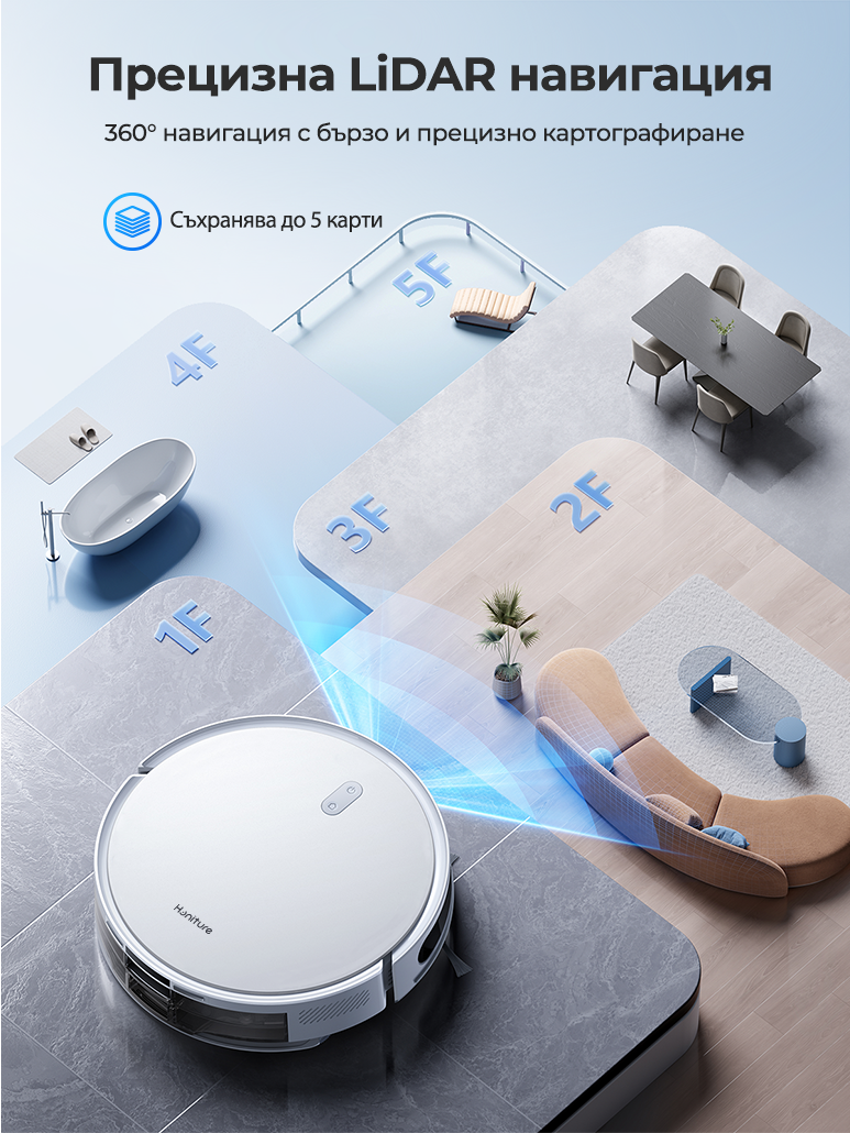 Технологията SoF LiDAR осигурява прецизна навигация и ефективни маршрути за почистване, като оптимизира покритието във вашия дом за по-интелигентно и по-цялостно почистване.