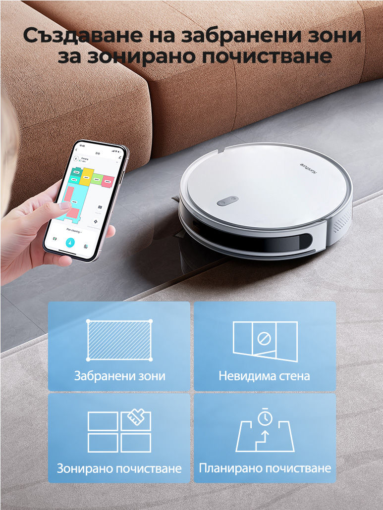 Чрез приложението можете лесно да определите зони, които не желаете да бъдат почиствани.